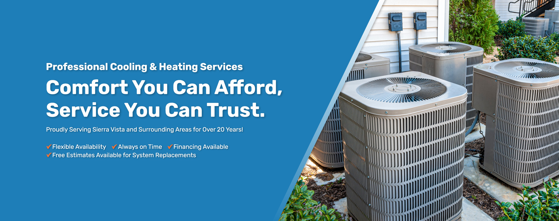 For decades, Qualified Comfort has proudly served businesses and families throughout Sierra Vista with dependable HVAC products and services. Our experienced team is committed to delivering expert workmanship, modern heating and cooling solutions, and pricing that makes sense for our customers. To help make comfort more accessible, we also offer financing options upon approval, allowing you to move forward with needed repairs or upgrades without unnecessary stress. When it comes to contemporary heating, cooling, and ventilation systems, you can count on a trusted local HVAC specialist dedicated to your comfort.